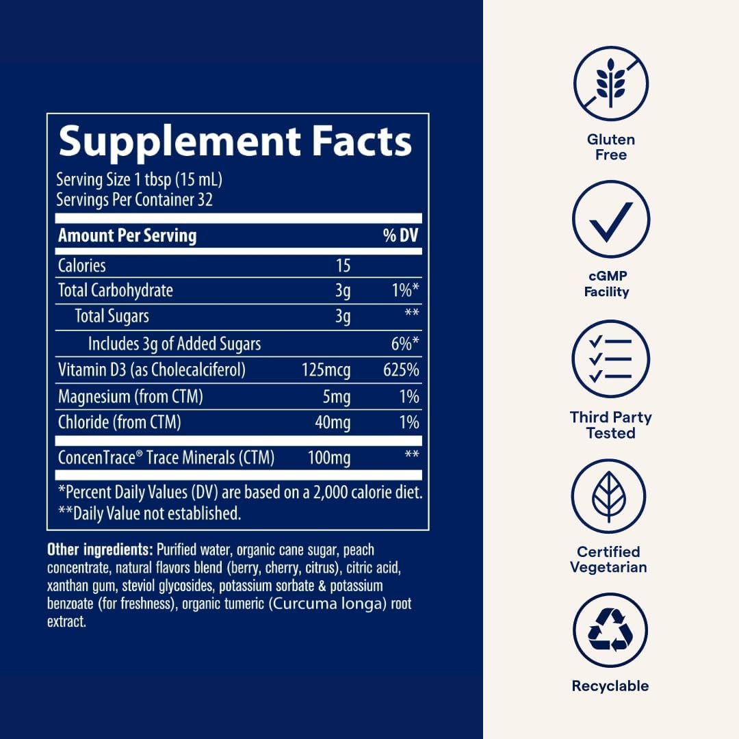 Жидкий витамин D3 - это пищевая добавка, которая содержит 125 мкг (5000 МЕ) витамина D3 на порцию, а также концентрированный комплекс ионных микроэлементов полного спектра.
